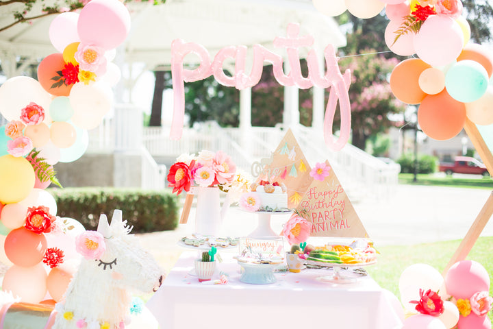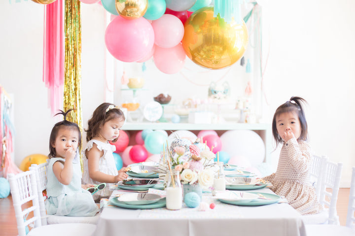 More details include Paper Sandwich invites with the cutest velum envelopes and milk bottle RSVPs. To complete the tablescape, we added dreamy floral arrangements by Lovesome Blossoms. Chloe and her friends were invited to pick their own kitten to take home from the “adopt-a-cat” booth with laser cut signage from Droptop Backdrop. And of course, no Cat-urday is complete without a dance party under the balloons!