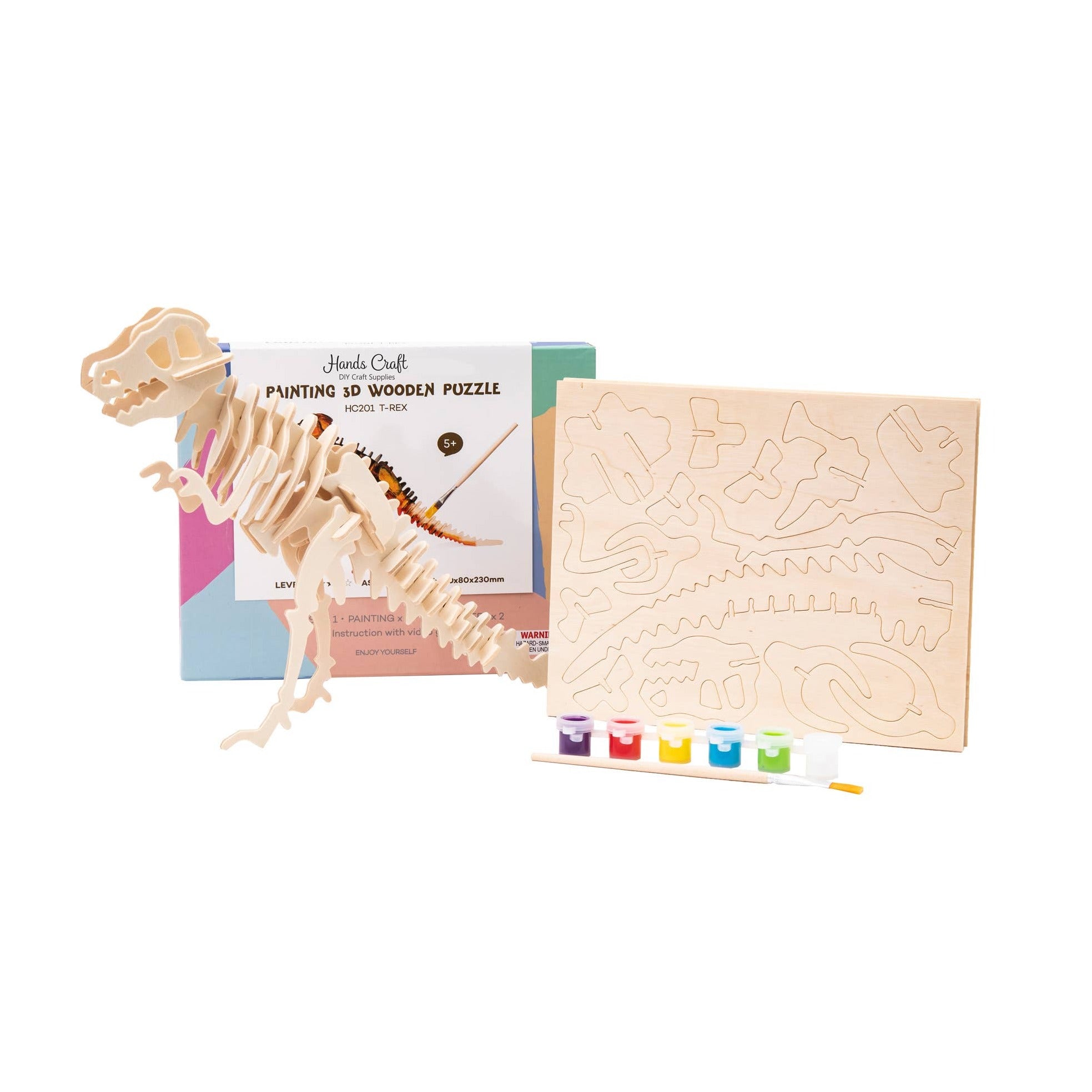 3D Wooden Puzzle Paint Kit - T-Rex