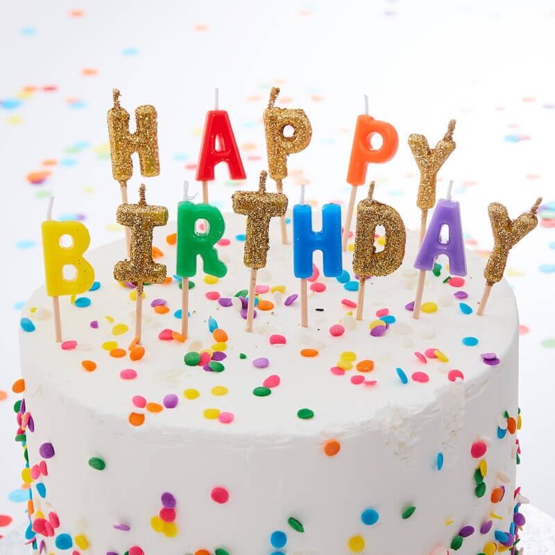Rainbow and Gold Glitter Happy Birthday Candles