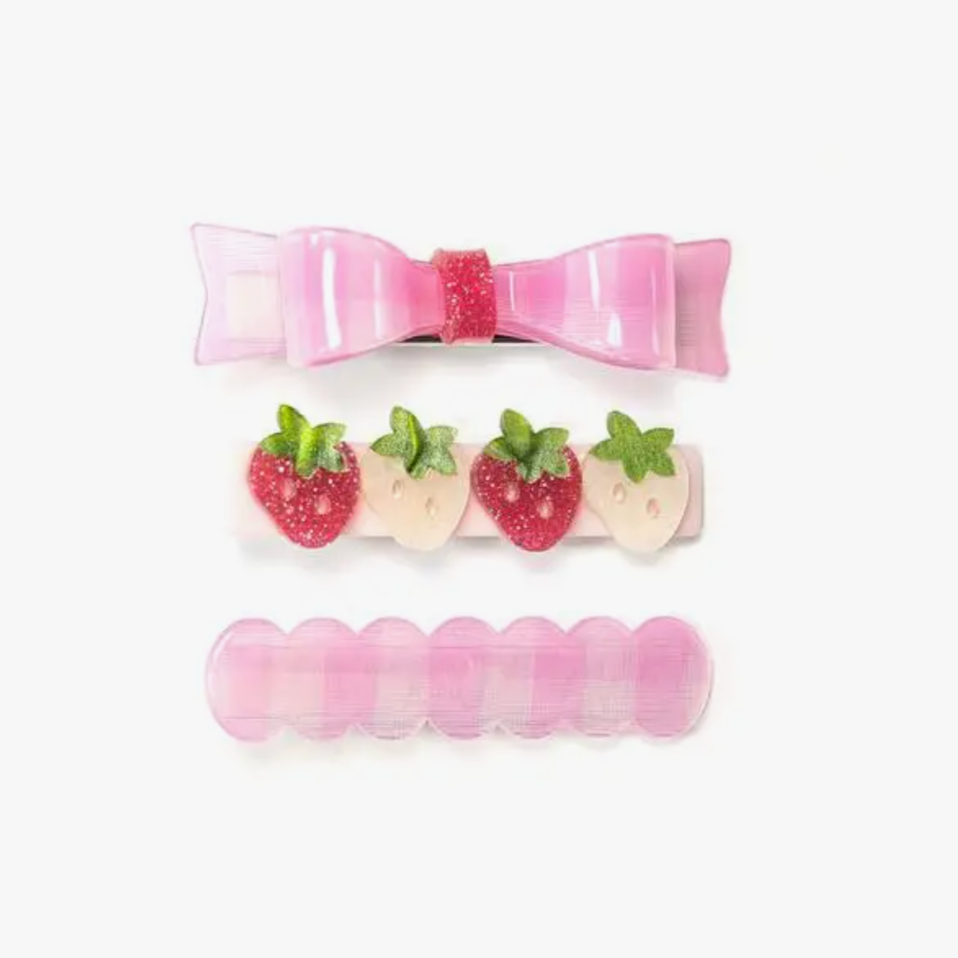 Pink Bow and Strawberries Hair Clips