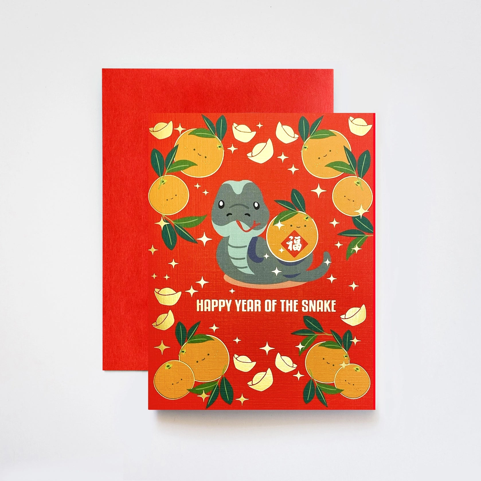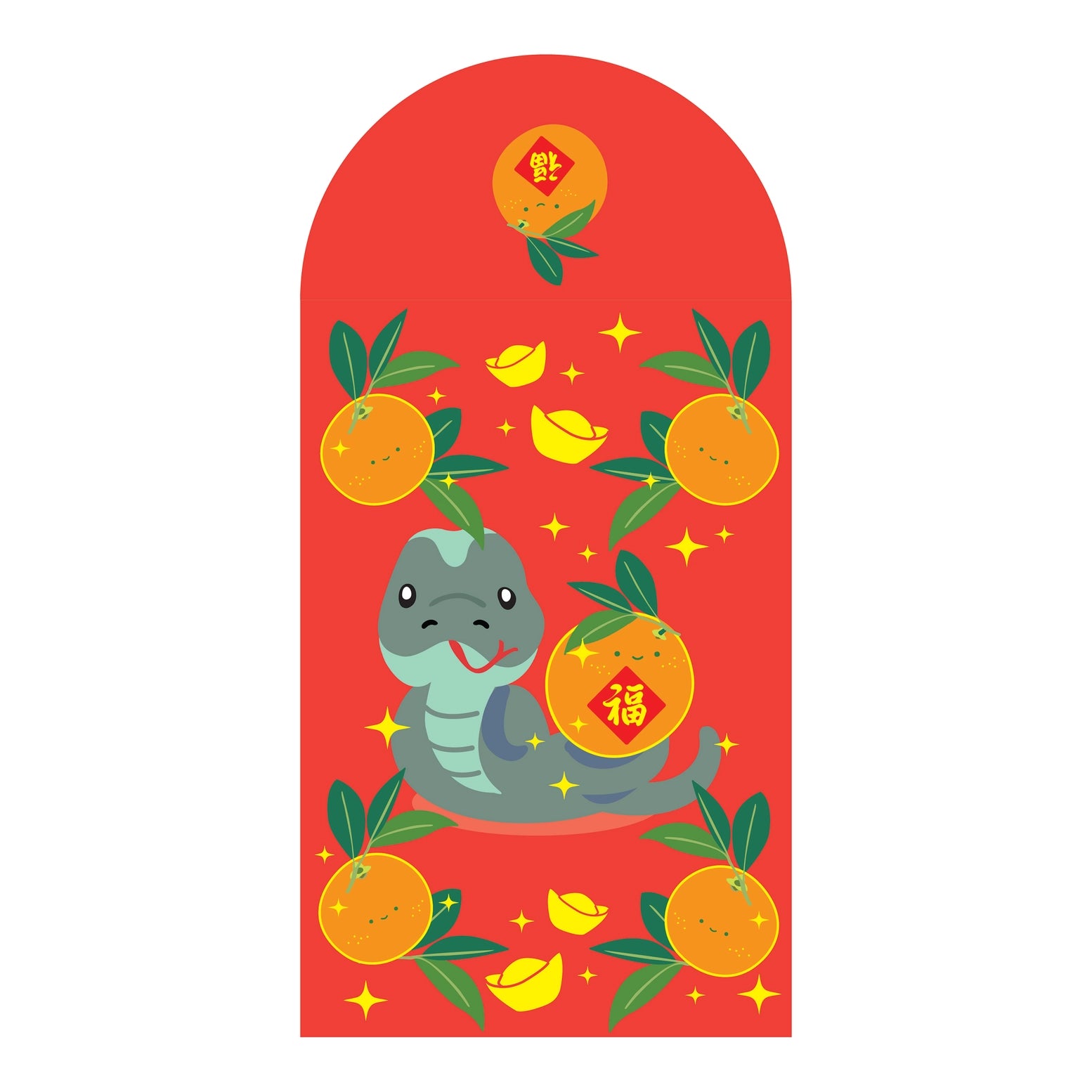 Snake With Lucky Oranges Gold Foiled Red Envelope
