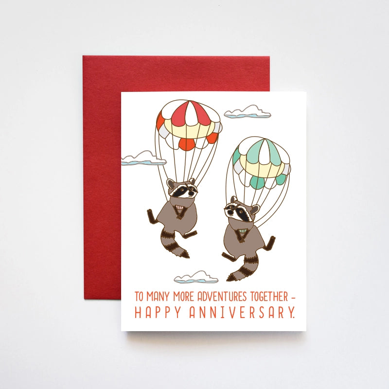 Sky Diving Raccoons Anniversary Card