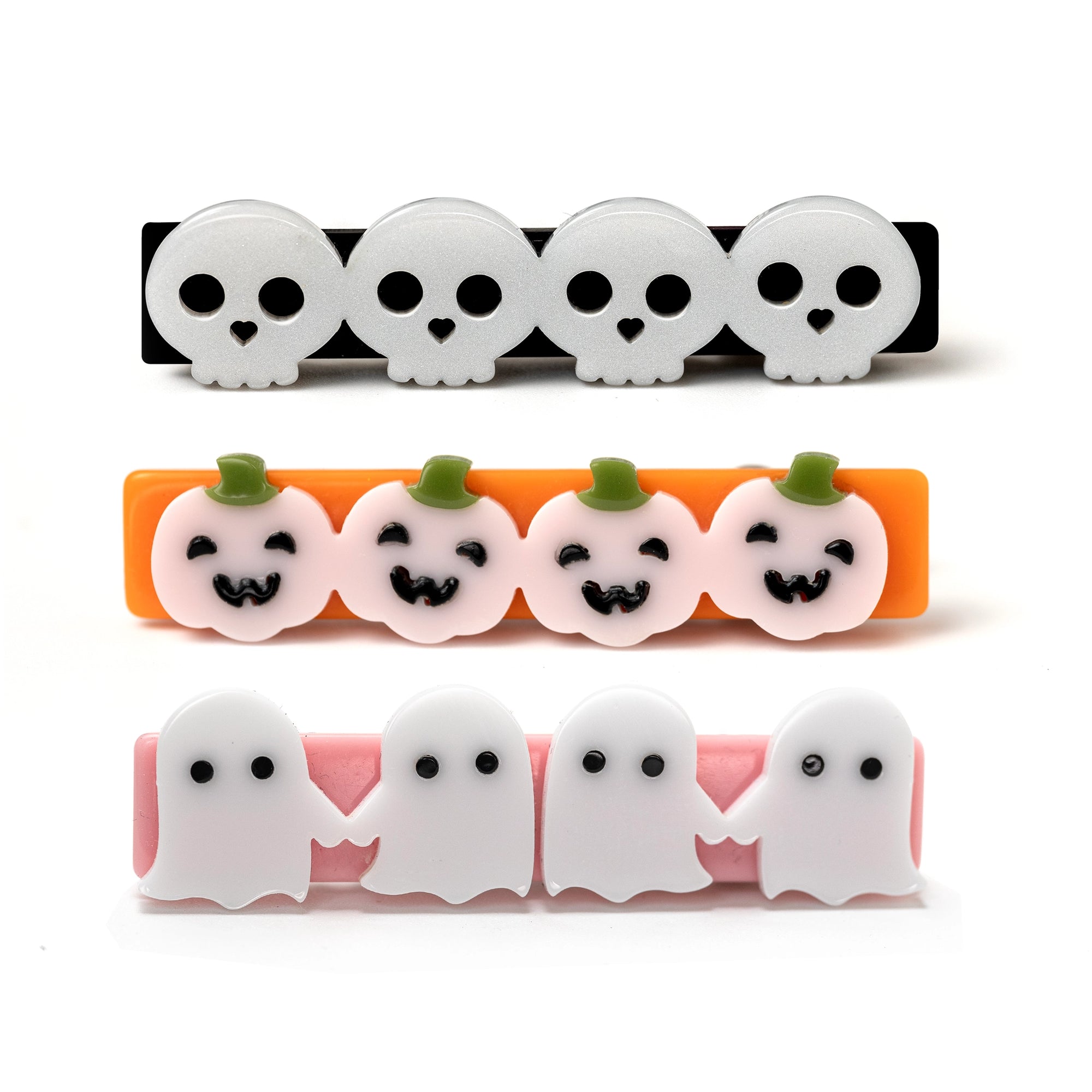 Skulls Pumpkins and Ghosts Hair Clips